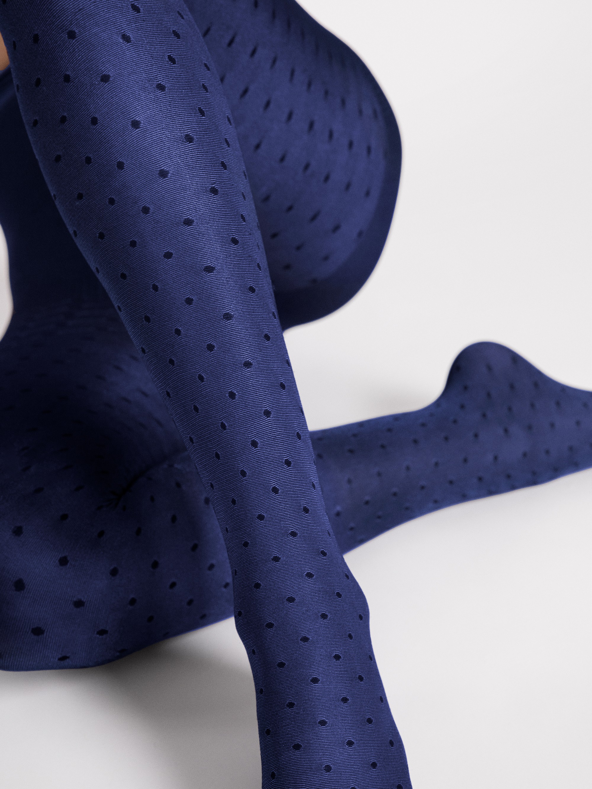 Charming blue polka dot tights, inspired by delicate strokes of pastel. The beautiful shade of blue evokes a sense of calm and serenity, while the delicate polka dots add textured depth. Like a box of pastel crayons, these tights offer versatility and endless styling possibilities. For example, pair them with any skirt and pastel blouse for a dreamy and feminine look.